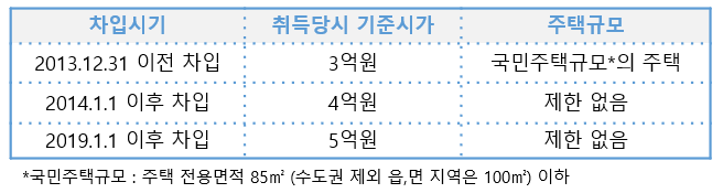 각 항목에 따라 적용대상과 공제받을 수 있는 주택규모와 공제한도금액이 다르며,